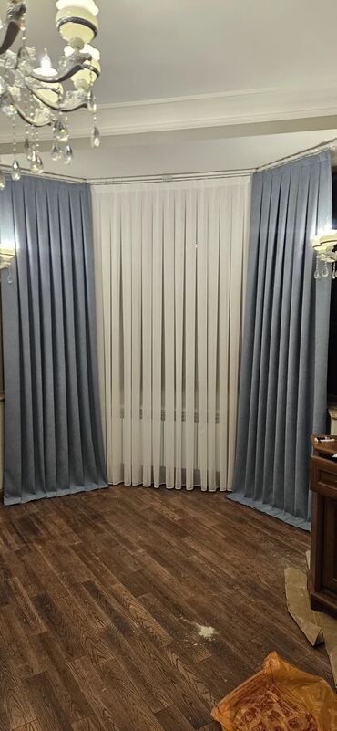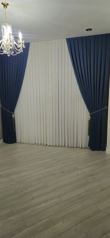 Mavi qalın pərdə və ağ tül dəstı - Dizayn: ikiqat sistem – yanlarda dərin mavi rəngli, sıx dokulu qalın pərdə; ortada yüngül, şəffaf ağ tül. Düz, səliqəli pliseli görüntü. - Stil: müasir minimal x...