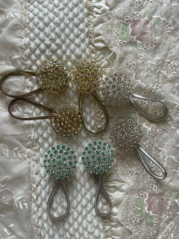 Bu maqnitli pərdə tutacaqları pərdələrinizi səliqəli şəkildə yığmaq üçün gözəl və funksional bir həlldir. Parlaq bəzəkli detalları ilə bu tutacaqlar istənilən otağa zəriflik qatır. Maqnitli dizaynı sayəsində istifadəsi asandır və pərdələrə zərər vermir. Qızılı və gümüşü rənglərdə, həmçinin yaşıl daşlarla bəzədilmiş variantları mövcuddur, bu da onları müxtəlif interyerlər üçün uyğun edir. Oturacaq, qonaq və yataq otaqlarında istifadə üçün idealdır