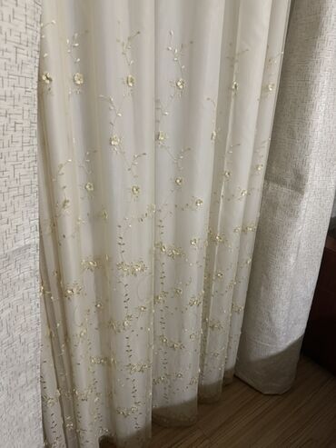 - 1 ədəd tül pərdə (krem ağ, üzərində incə çiçək aplikasiyaları)