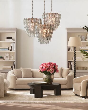 - Asma çilçıraqlar: çoxlu şüşə elementli, mərtəbəli kompozisiyalar; isti, diffuz işıq.