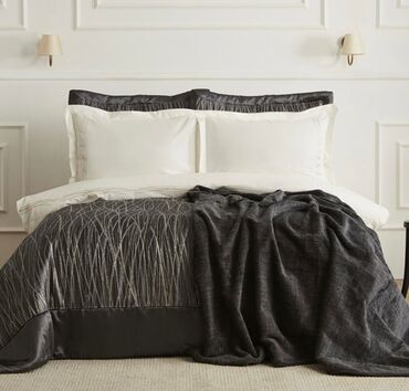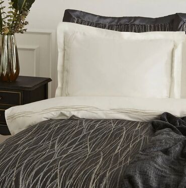 4 yastıqüzü,yorğanüzü,çarşaf,adyal və yataqüstü.Premium yataq dəsti – qrafit və krem rənglərin harmoniyası