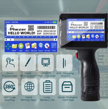 Əl mürəkkəb püskürtmə yazıcısı. QR, strixli bar kod, tarixi nömrə, loqo, son İstifadə tarixi, kodlama maşını.