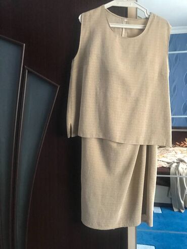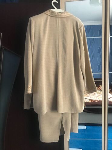 Продается строгий женский костюм тройка, юбка, кофта и пиджак бежевого цвета, размер 50-52