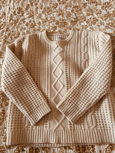 GANT Rugger “The Cable” sviteri - Rəng: krem/bej - Material: 100% yun (etiketdə göstərilib) - Ölçü: L - Model: kabel toxunuşlu, müxtəlif naxış kombinasiyaları ilə (mərkəzdə rombvari kabel, yanlard...