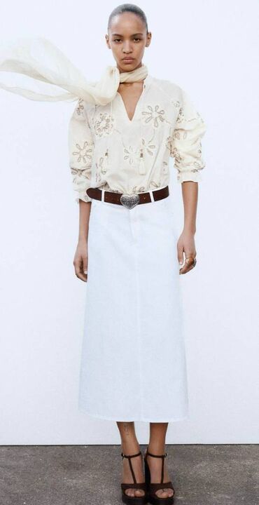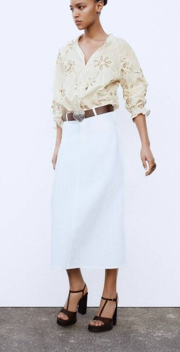 Zara brendinə məxsus, uzun, cins ətək. Gündəlik geyim üçün uyğundur. 1 defe geyinilib