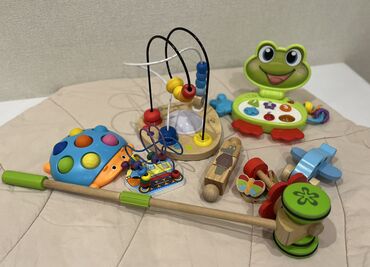 Hape də daxil olmaqla, inkişafetdirici oyuncaqlar dəsti satılır. Hamısının vəziyyəti əladır: bütövdür, işləyir, batareyaları yenidir. Uşağın inkişafı üçün mükəmməldir.