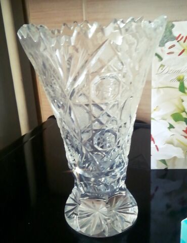 Xtustal vaza. Əl kəsimi. Hündürlüyü 25 sm. Qutusu var. 10 manat. Ünvandan götürülmə.