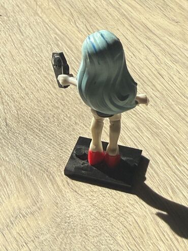 Monster High tərzli moda kuklası - Yaşıl-mavi tonlarda bədən, iri qıvrım bənövşəyi saçlar - Detallı makiyaj və ifadəli gözlər - Çoxrəngli naxışlı don: zolaq, dama və spiral elementləri ilə - Akses...