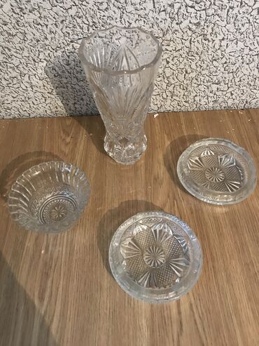 Хрустальные вазы , со старых времен. для варенья ,конфет и для фруктов цены разные . большая ваза 30 ман .маленькая 10 ман