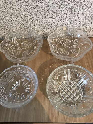 YENİ!!! -Təmiz xrustaldan 2 ədəd meyvə və 2 ədəd konfet qabı (sovet dövrünə aiddir). -Həm cehizlik, həm hədiyyəlik, həm də özünüzün istifadə edə biləcəyiniz gözəl qablar. -4-ü bi yerdə satılır. -...