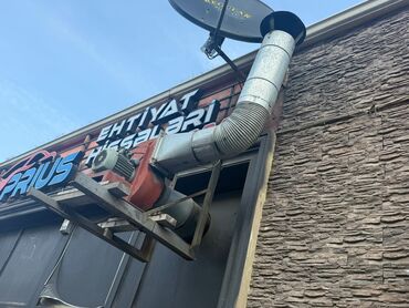 - Sənaye tipli çəkici havalandırma: böyük ölçülü paslanmayan polad aspirasiya başlığı (kupa), içəri hava kanalları və çöldə güclü mərkəzdənqaçma fan (motorlu) ilə.
