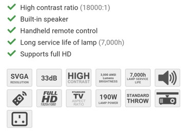 Proyektor Optoma DS346İ. 65 saat uşləyib.işiqli şəraitdə yaxşı göstərir. zəmanət verilir