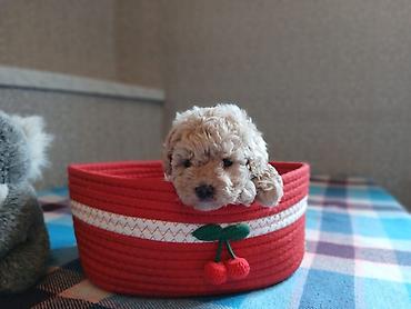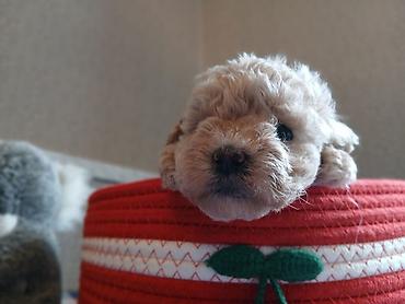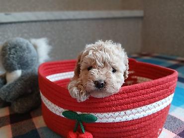 Miniatür, qıvrım tüklü balaca it balası. - Cins: Pudl tipli (toy/miniatür görünüşlü) - Rəng: Açıq krem/qızılı - Xüsusiyyətlər: Hipoallergen qıvrım yun, tökülməsi az; ağıllı və öyrədilməsi asan; ail...