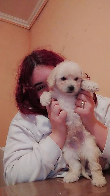 Ağ tüklü kiçik ölçülü it – poodle/bişon tipli xəzli ev heyvanı 6aylıqdır dişidir Cox yaxşı baxılır - Rəng: qar kimi ağ - Xəz: yumşaq, sıx və qıvrım; hipoallergen tipli tüklənmə (az tökülür), mütəma...