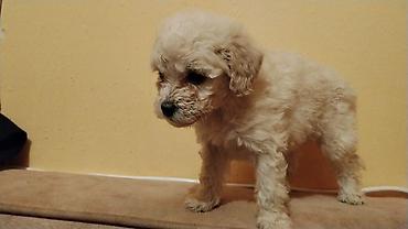 Balaca, krem rəngli, qıvrım tüklü it balası. Kompakt bədən quruluşu, yumşaq və sıx yun örtüyü, qısa pəncələr və yuvarlaq sifət. Ev şəraitinə uyğun, mehriban və oynaq xasiyyətli, qucağı sevən, ağıll...