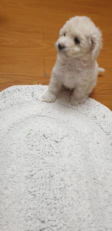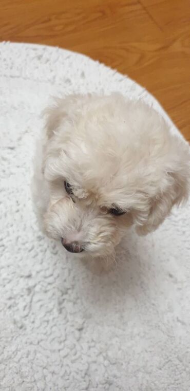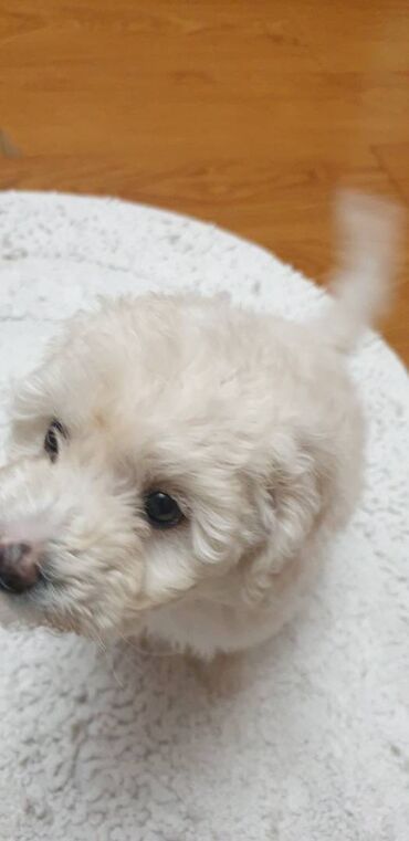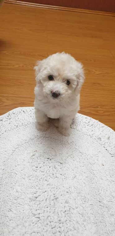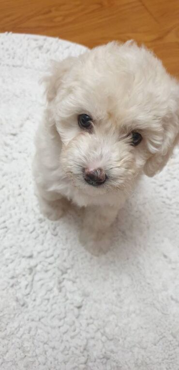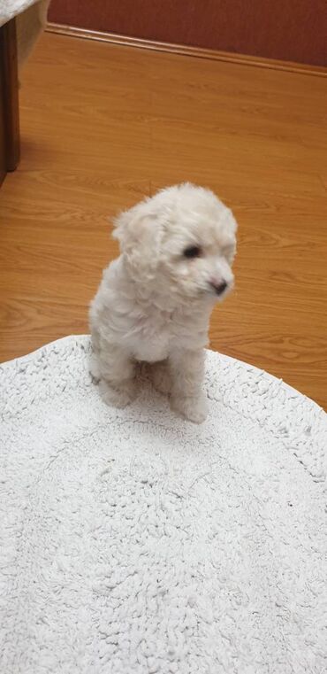 Karlik pudel erkək. 6 aylıqdı.Təmiz baxımlı baladır.ev şəraitində saxlanılır.tualet tərbiyəsi var.vaksin vurulub.istəyən vp.da canlı görə bilər.yazın😊