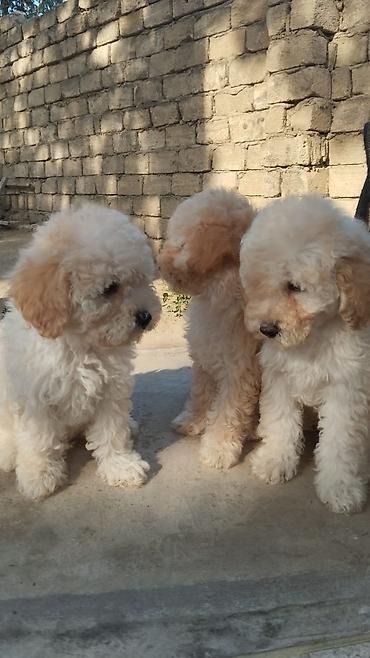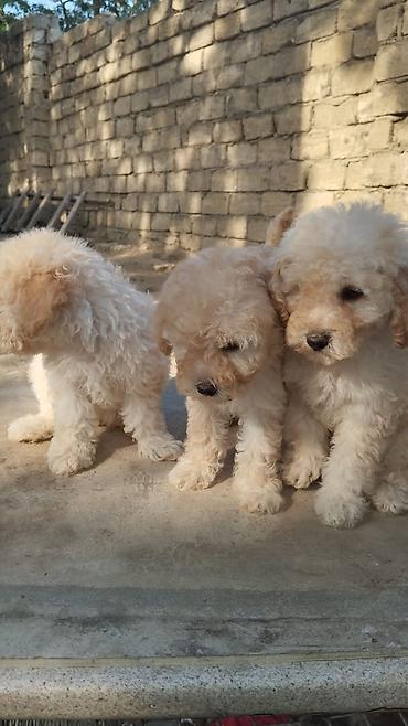 Şirin mini ölçülü balaca it balaları – ehtimalən pudel/maltoyp tipli qarışıq. Rənglər krem-bej tonlarında, yumşaq, sıx və qıvrım tüklü. Kompakt bədən quruluşu, qısa pəncələr, qara burun və qara göz...