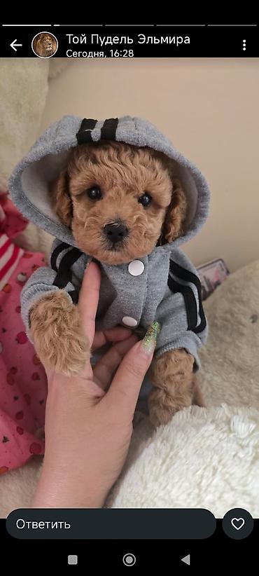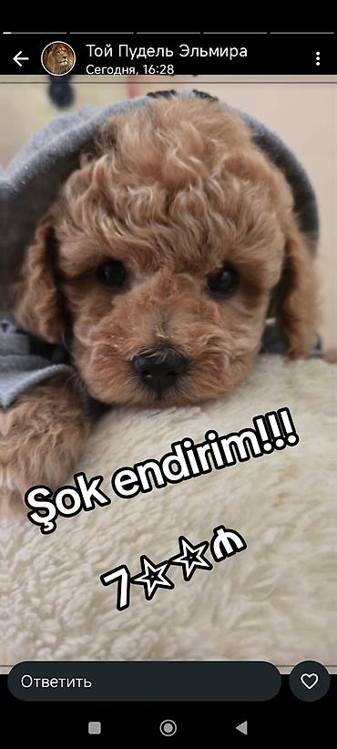 Mini pudel (toy/mini ölçü) – şirin krem-qəhvəyi rəngli, qıvırcıq tüklü Xüsusiyyətlər: - Cins: Poodle (mini/toy ölçülü) - Rəng: krem/qəhvəyi (aprikot tonları) - Yumşaq, hipoallergen qıvırcıq tük qu...