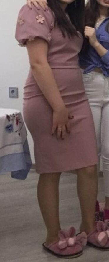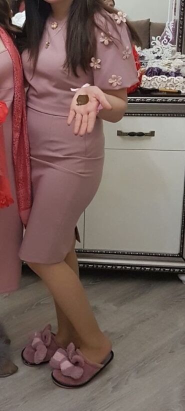 Məhsul: Pudra-çəhrayı rəngdə qadın paltarı