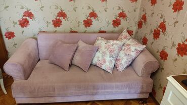 Rahat oturuş, zərif rəng palitrası və dekorativ yastıq dəsti ilə məkanı daha isti və dəbli göstərən divan.