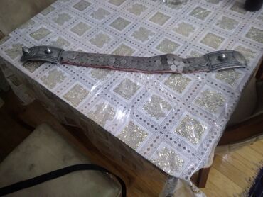 Qədimi gümüş kəmər satılır Antikvardı 2əsr yaşı var - Qara parça əsaslı, boyunca metal nəbati və ulduz formalı aplikasiyalarla bəzədilib. - Uclarında iri, oyma naxışlı metal plaketlər və möhtəşəm...