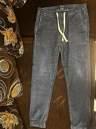 - Model: jogger/denim qarışığı, elastik bel və iplə bağlama