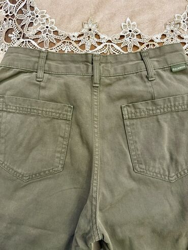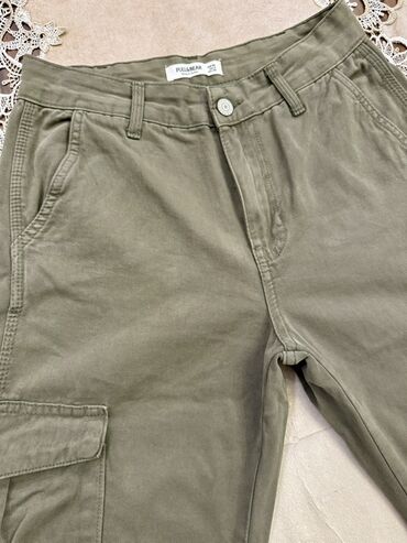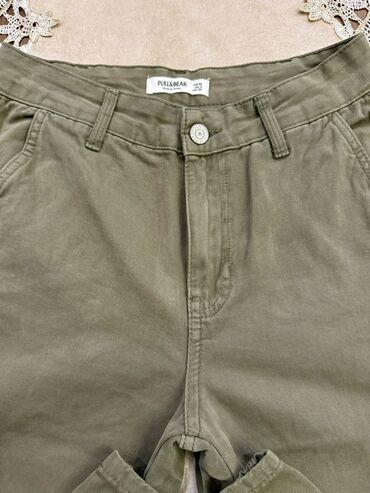 Pull&Bear, Kargo model, düz kəsimli, hündürbel qadın kargo şalvarı. Rəng: hərbi-yaşıl (haki). Bədən: 36 (S). Material: 100% pambıq. Çox az geyilib. Hal-hazırda bədəni kiçik olduğu üçün satılır.