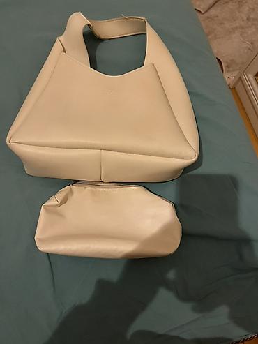 Qadın çantası – krem rəngli, yığımlı dizayn - Material: yumşaq, parıltılı eko‑dəri - Rəng: açıq krem/ivori - Forması: yarımay siluetli, ön-arka hissədə büzgülü - Tutacaq: qalın, elastik görünüşlü ...