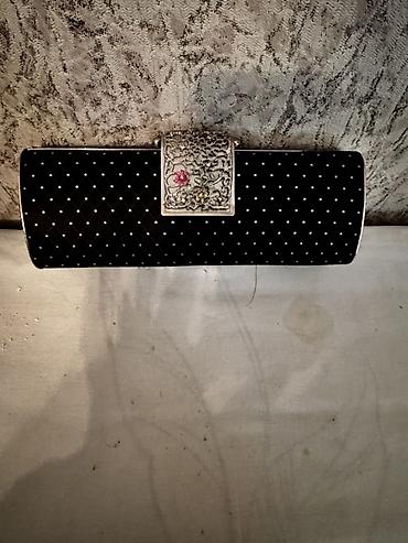 Əl işi zərif cüzdan/kiçik çanta - Material: Qara məxmər parça üzərində qızılı sapla əl işi naxışlar - Bəzək: Gül motivli payet/boncuk işləmələri, mərkəzdə inciyə bənzər dekorativ daşlar - İçlik: Q...