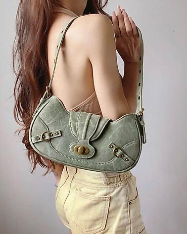 Mini çiyin/çapraz çanta – müxtəlif rənglər - Dizayn: Yumşaq yuvarlaq siluetli mini baget forması, ön qapaqlı. Qapaqda dekorativ kvadrat formalı qızılı rəngli metal kilid elementi. - Material: Hama...