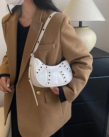Ağ rəngli zərif qadın çantası - Material: süni dəri - Dizayn: qapaqlı, ön hissədə dekorativ “S” formalı kilid elementi - Tutacaqlar: üstdən əl tutacağı və çıxarıla bilən, tənzimlənən çiyin kəməri ...