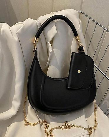 Minimalist dizaynlı qara çiyin/əl çantası - Material: hamar teksturalı eko–dəri (PU) - Rəng: mat qara - Furnitura: cilalı gümüş rəngli metal kilid və halqalar - Daşıma üsulları: yuxarıda möhkəm əl...