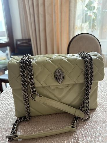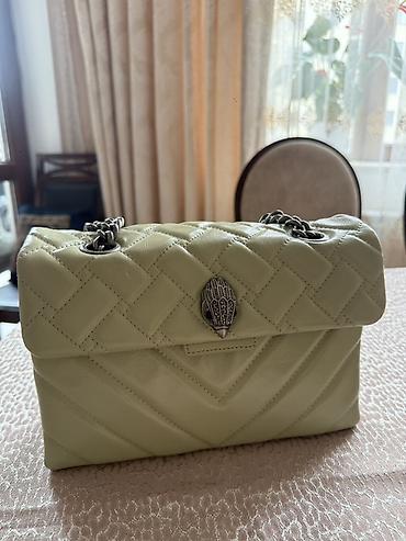 Kurt Geiger London Bej rəngli, kompakt çiyin/çapraz çanta - Material: yumşaq dəri effektli üst. - Naxış: rombvari kapitone tikiş, açıq-yaşıl kontrast sapla. - Aksesuar: antik gümüşü tonlarda metal...Giriş•Qeydiyyat