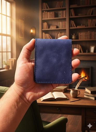 Əl istehsalı dəri kartlıq/cüzdan - Material: qalın təbii bitkisel aşılanmış dəri, tünd qəhvəyi tonlarda - Dizayn: minimal və kompakt; üçbucaq kəsimli ön ciblər, üst hissədə iki ədəd metal düymə il...