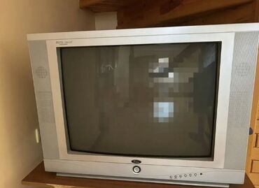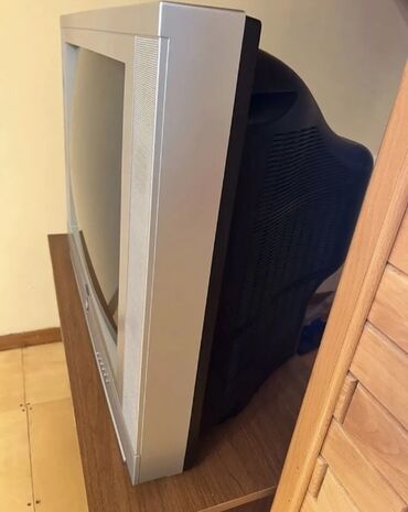 Kineskop (CRT) televizor, gümüşü korpuslu, ön paneldə inteqrə edilmiş iki yan dinamik və idarəetmə düymələri. Ekran geniş formalı, ön hissədə “Protek Control” yazısı görünür. Ön paneldə kanal/səs düymələri və əsas açma/söndürmə düyməsi, alt hissədə isə göstərici işığı var. Arxa hissə havalandırma barmaqlıqları ilə iri “küpə” tipli dizayndadır. Pult (uzaqdan idarəetmə) birlikdədir.
