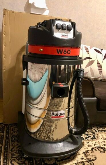 - Pulwa W60 ekstraktor tipli yuyucu tozsoran: 3 müstəqil açarla idarə olunan güclü motor bloku, paslanmayan polad gövdə, su/kimyəvi məhlul üçün sistem, şlanq və boru qoşmaları üçün ön çıxış.