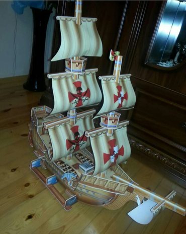 Ağacdan hazırlanmış yelkənli gəmi modeli. Dekorativ detal kimi ev və ya ofis interyerinə uyğunlaşdırıla bilər. Modeldə yelkənlər, dirəklər və göyərtə kimi əsas elementlər təsvir olunub. Maraqlı diz...