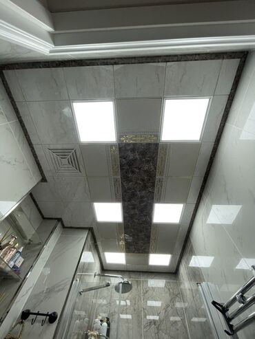 - PVC tavan panelləri, dekorativ naxışlı kvadrat elementlər və bordürlər