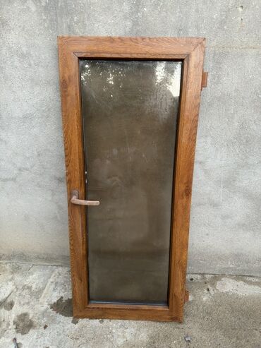 Qapı-pəncərə üçün PVC pəncərə çərçivələri - Material: PVC (AVEO profil) - Rəng/tekstura: tünd ağac dekoru - Şüşə: biri mat/şəffaflığı azaldılmış şüşə, digəri şəffaf şüşə - Açılma sistemi: kiçik öl...