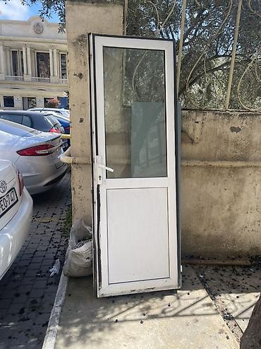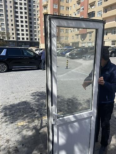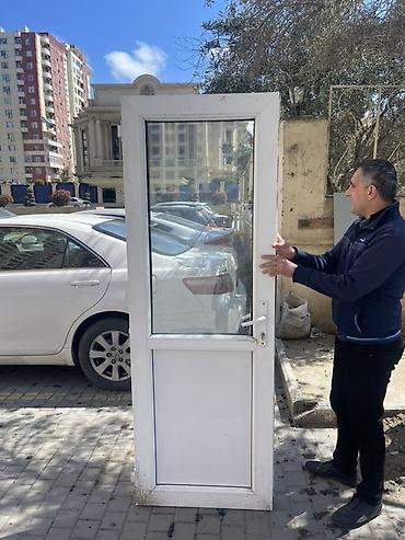 PVC şüşəli qapı - Material: Ağ rəngli PVC profil, üst hissəsi şəffaf