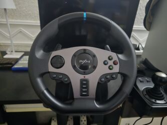 - Sükan: 270°- 900°ə yaxın dönmə bucağı, rezinləşdirilmiş tutacaq, üzərində D-pad, A/B/X/Y düymələri, L1/L2/R1/R2 və funksional düymələr (MODE, TURBO və s.). Sürətləndirmə üçün arxa hissədə qolçular (shift paddles).