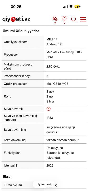Qara reng. Xiaomi 12T 128 gb. Problemi, girigi yoxdur, ustada olmayib. Ekran zavodskoy. Teze telefon aldigim ucun bunu satiram.