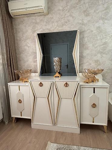 Şık dizaynlı 4 qapılı paltar şkafı Quraşdırılması bizdən 🎁 - Rəng: qara mat korpus, qızılı dekorativ çərçivələr və tutacaqlar - Ön hissə: iki ədəd tam ölçülü güzgülü qapı - Material: MDF/laminat ...