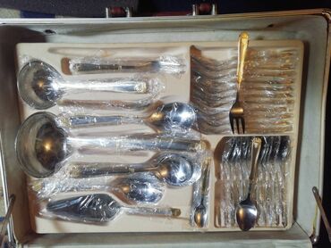 12 nəfərlik imperator yemək dəsti. Çamadan olduğca ağırdı. Dəst əla keyfiyyətə malikdi və hər cür masaya xidmət etmək üçün uyğundu əyilməyən,paslanmaya. 84 element BRD 18\1024K Almaniya istehsalıd...