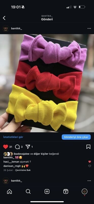 sehifesine drecte yazsin..Çeşidli rənglərdə olan bu bantlar, həm qızlar, həm də böyüklər üçün nəzərdə tutulub. Yumşaq və elastik materialdan hazırlanmış bu aksesuarlar, saçları toplamaq və ya sadəcə görünüşünüzə əlavə bir detal qatmaq üçün idealdır. Gündəlik istifadə üçün rahat və praktikdir.