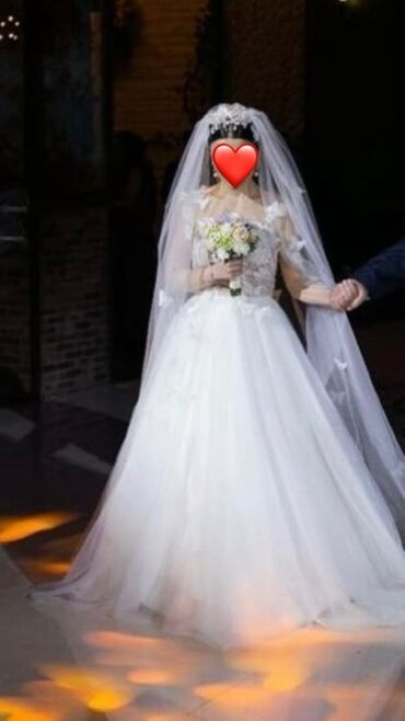 Romantik, yüngül və zərif görünüş yaradan, foto və videoda incə detallarını gözəl göstərən tam dəstdir (gəlinlik + uzun fatin + tac). Təmiz, zərif işləmələr və rahat hərəkət üçün uyğun kəsim. Şənlik və məkan işığında ətəyin həcmi xüsusi vurğulanır.