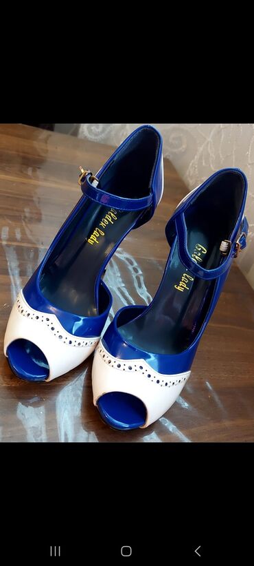 Mavi parıltılı qadın tuflisi – stiletto olcu 36-37 e gedir ince penceli xanimlara - Rəng: dərin kobalt/mavi, incə parıltılı tekstura - Model: sivri burun, klassik stiletto daban - Daban hündürlüyü...