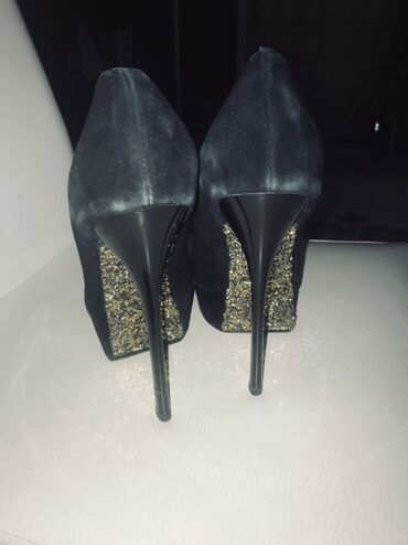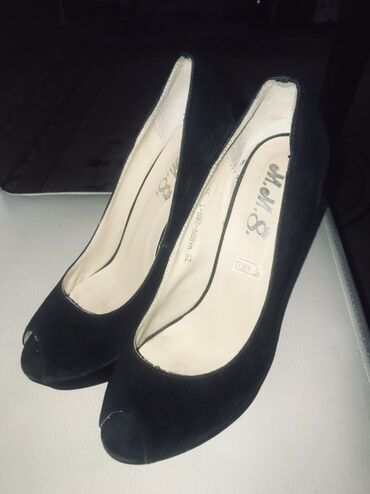 Qadın klassik tuflilər - Rəng: qara - Model: şıq, sivri burunlu klassik pumps - Topuq: nazik stilettо, təxminən 9–10 sm - Material: hamar parıltılı üst (sintetik/eko dəri tipli), iç hissəsi yastıq...