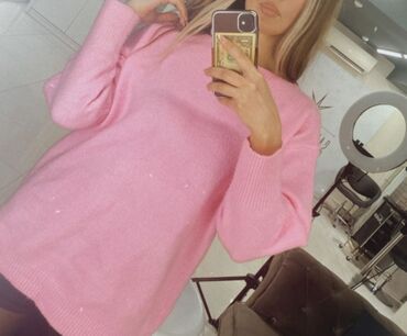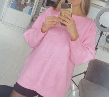 Zərif açıq çəhrayı rəngdə oversize sviter - Yumşaq, tüklü teksturaya malik, rahat və isti material - Geniş, uzun qol forması – modern və sərbəst siluet - Yuxarıdan enli, aşağıya düz kəsim; rahat o...