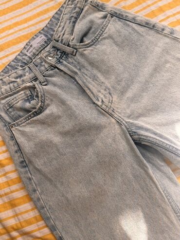 Mavi açıq rəngli düz kəsimli cins şalvar